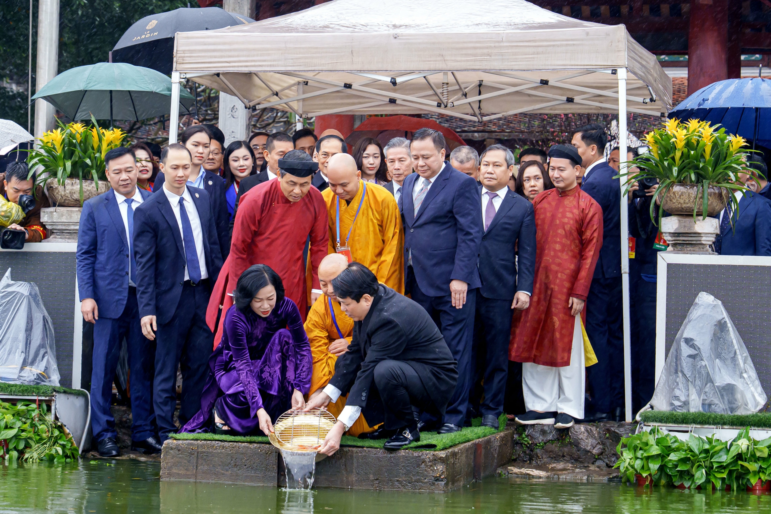 Tại di tích Quốc gia đặc biệt Hồ Hoàn Kiếm và Đền Ngọc Sơn, Chủ tịch nước Cộng hòa Xã hội Chủ nghĩa Việt Nam Lương Cường và Phu nhân Nguyễn Thị Minh Nguyệt cùng kiều bào thực hiện nghi thức thả cá chép xuống Hồ Gươm. Đây là nghi thức được thực hiện hàng năm theo truyền thống của dân tộc Việt Nam , nhân dịp lễ ông Công ông Táo (23 tháng Chạp), cầu cho quốc thái dân an, đất nước thái bình, thịnh vượng, nhân dân ấm no, hạnh phúc.
