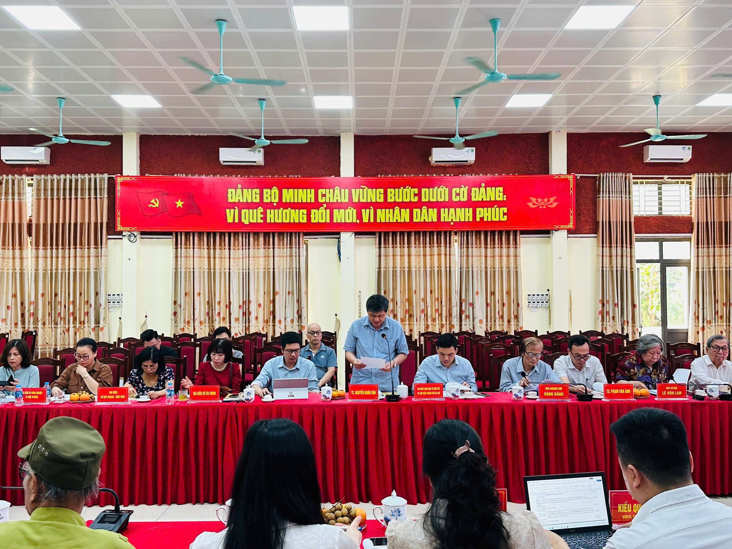 Chủ trì hội thảo khoa học: Đồng chí Nguyễn Đức Tiến – Bí thư Đảng ủy, Chủ tịch HĐND xã Minh Châu; PGS. TS Trần Đức Cường – Chủ tịch Hội Khoa học lịch sử Việt Nam; GS.TS Nguyễn Quang Ngọc – Phó Chủ tịch Hội Lịch sử Việt Nam. Đại diện các Sở, ngành, Trường Đại học Khoa học xã hội và Nhân văn Hà Nội, Viện Văn học Việt Nam; Đồng chí Nguyễn Huy Nhung – Phó Bí thư Thường trực Đảng ủy, Chủ nhiệm UBKT xã Minh Châu; Đồng chí Đinh Tuấn Anh – Phó Chủ tịch UBND xã Minh Châu; Các chuyên gia, các nhà khoa học: GS. Lê Văn Lan, PGS. TS Trần Lâm Biền, Nhà nghiên cứu Đặng Bằng; Đại diện lãnh đạo các phòng, ban của UBND xã Minh Châu; Các cơ quan thông tấn, báo chí…